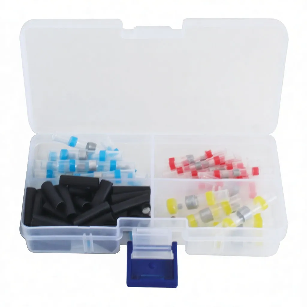 This heat shrink solder sleeve connector combines simplicity with reliability for professional wire termination. Designed for 12-10 AWG wire (2.8mm nominal), the 6mm connector size accommodates standard electrical and automotive wiring applications. Each unit features a pre-loaded solder sleeve inside a color-coded yellow heat shrink tube—eliminating the need for separate crimping tools or manual solder application. Your customers can complete solid, corrosion-resistant connections in seconds using only a heat source. Stock this 100-piece pack to serve technicians working in automotive, industrial controls, marine, and general electrical maintenance. Pair this with comprehensive terminal assortments or larger heat shrink connector sets to build a complete connector solution for your shop.