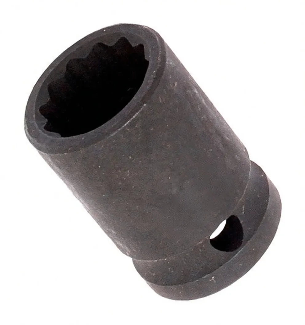 This 27mm impact socket is engineered for professional-grade pneumatic impact wrenches and high-torque ratchets. Constructed from chrome-molybdenum steel with a dark phosphate finish, it delivers the durability required in heavy-duty automotive, industrial, and fleet maintenance environments. The 12-point drive geometry provides reliable fastener engagement while minimizing cam-out risk on seized or stubborn fasteners. Stock this size alongside smaller 12-point impact sockets and larger variants to offer your customers a complete fastener removal solution.