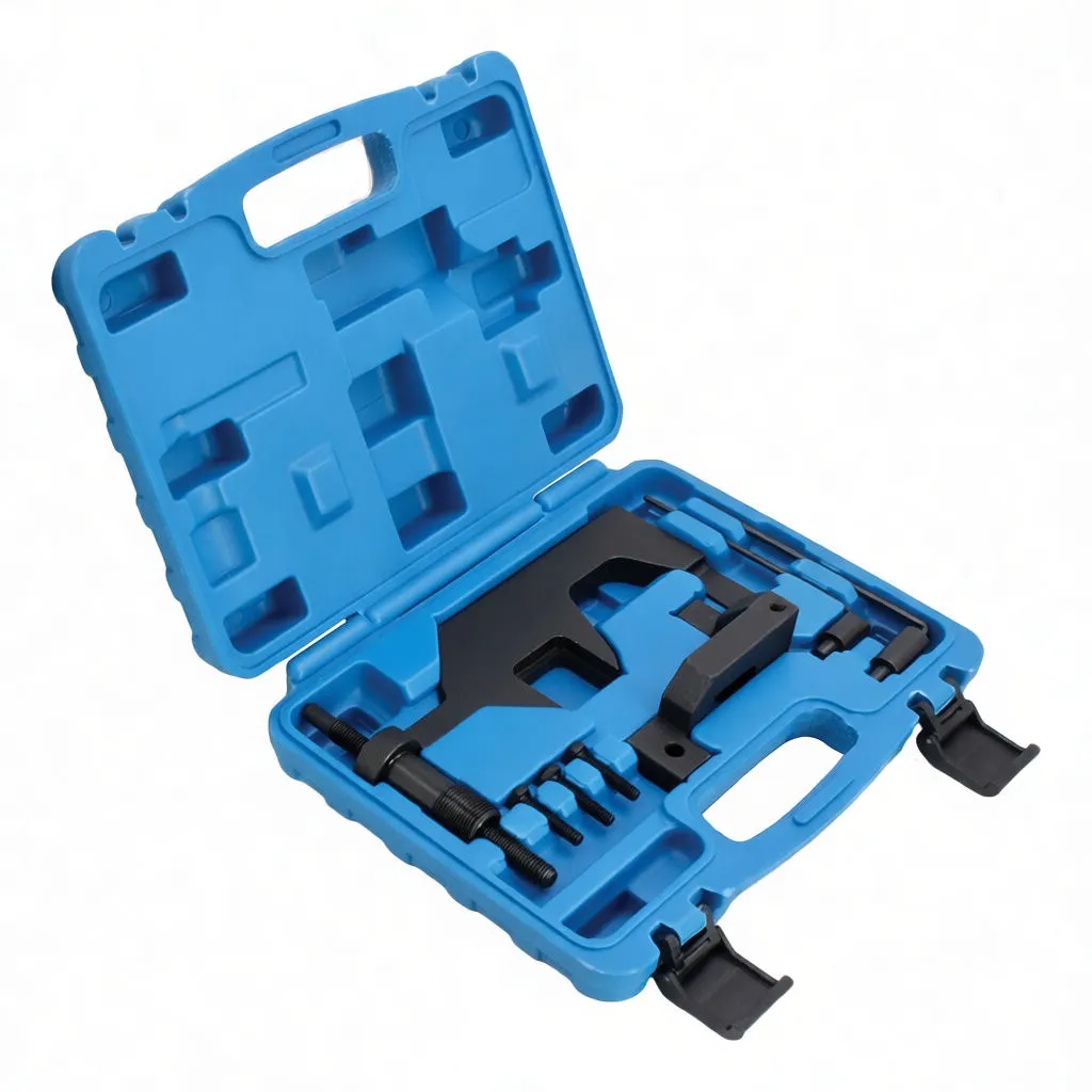 This specialized locking tool set is engineered for timing belt replacement and camshaft synchronization on Renault 1.4 and 1.6-liter 16-valve engines. The kit eliminates guesswork during critical engine timing operations, ensuring precise alignment and reducing service time. If you stock camshaft alignment tools for other European platforms, this Renault-specific set completes your timing service capability across multiple engine families.