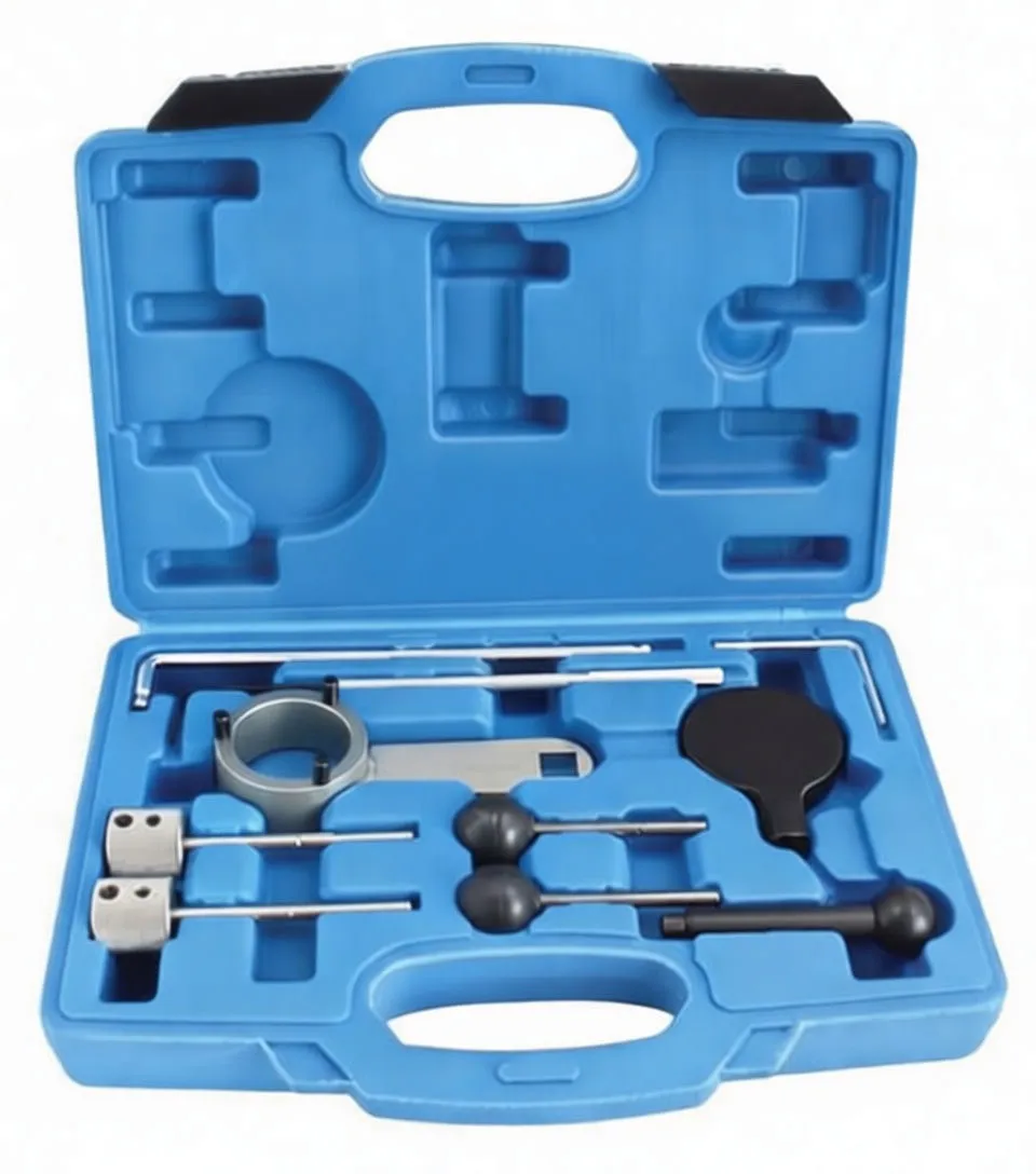 This timing belt locking tool kit is purpose-built for Opel and Chevrolet 2.0L engine timing alignment and camshaft positioning work. The complete set arrives in a durable blue plastic carrying case with custom-molded compartments, ensuring all components stay organized and protected on the job site or in your service bay. If you service multiple European engine platforms, consider pairing this with timing lock kits for VAG 1.6/2.0 TDi engines or BMW N-series timing tools to maximize your timing service capabilities across your customer base.