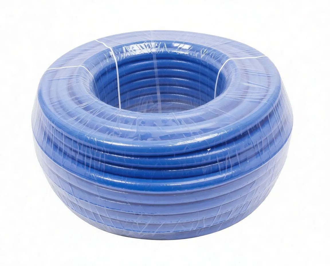 Professional-grade polyurethane braided hose for pneumatic and fluid transfer applications. 50-meter bulk coil ready for resale.