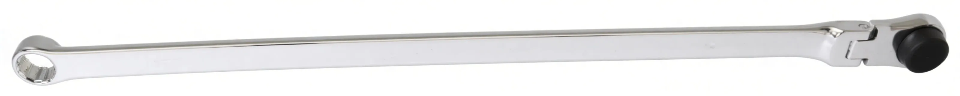 This extra-long ring ratchet spanner is engineered for technicians who need extended reach in restricted engine bays, chassis work, and industrial assembly operations. The 380mm length combined with the asymmetric 12-point ratcheting head gives you fast fastening speed without the need to reposition the wrench repeatedly. Built with chrome-vanadium shank and chrome-molybdenum ratchet insert, this tool delivers the durability and precision your shop demands. Consider pairing this with additional extra-long ratchet tools to maximize accessibility in tight-space jobs or with long double ring wrenches for dual-end fastening capability.