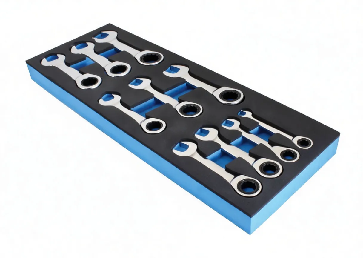 - Secure Foam Retention: Custom-cut black foam with blue backing base holds each tool firmly in place