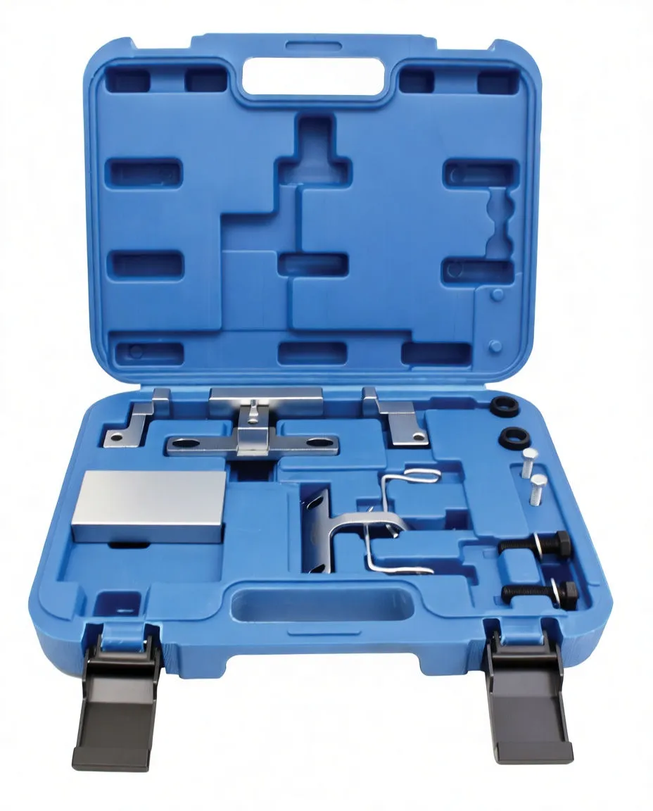 This comprehensive timing tool set is engineered for precise valve timing adjustment on DW10 and DW12 diesel platforms from PSA (Citroën, Peugeot) and Fiat. The kit delivers all locking pins, belt management tools, and pulley extraction equipment required for diesel engine timing work—eliminating the need for multiple specialty purchases. For shops maintaining a broader diesel service capability, consider pairing this with timing tools for other Renault and Nissan diesel platforms to expand your diesel timing coverage.