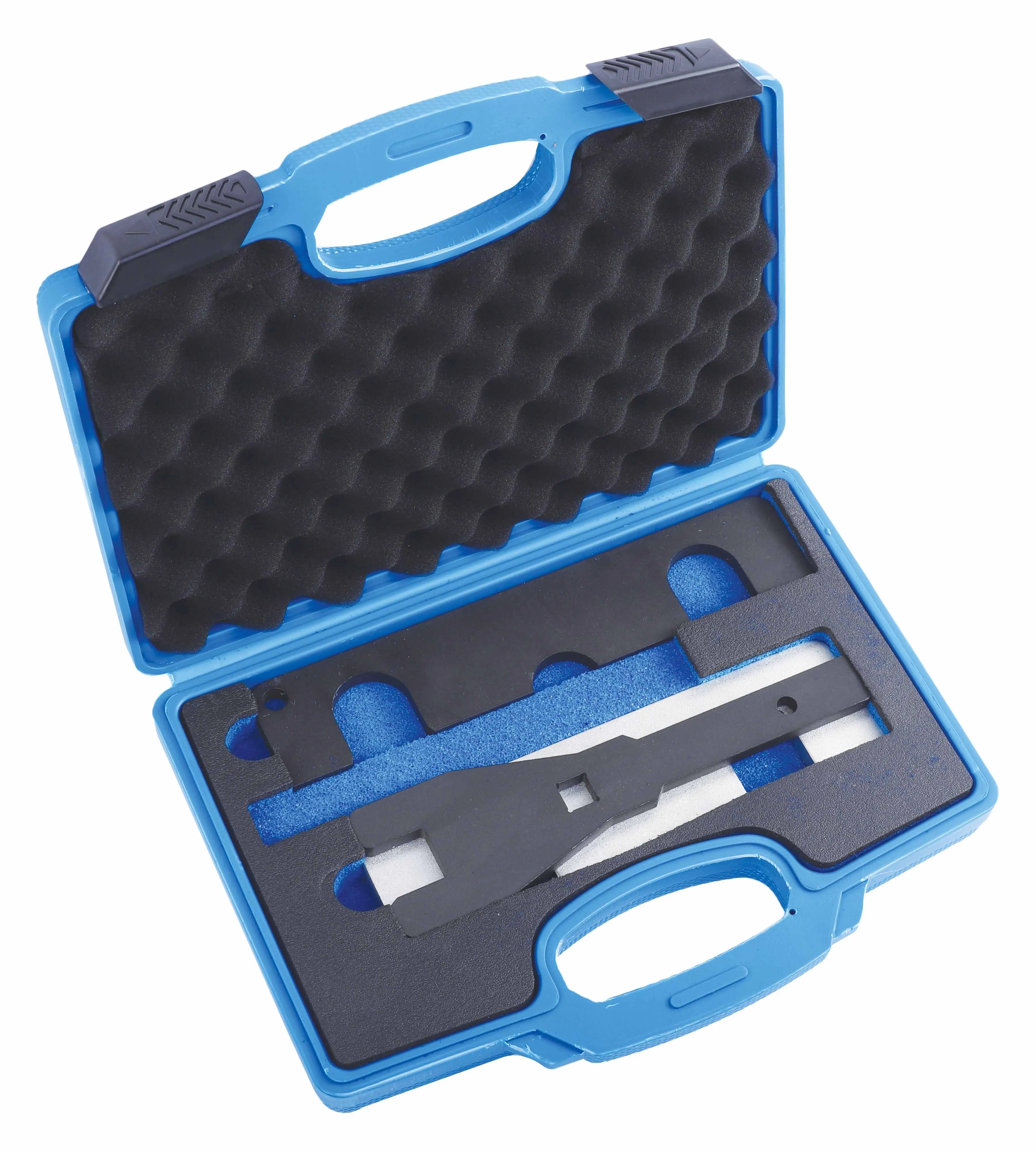 This timing tool set is purpose-built for locking engine timing during cambelt replacement or adjustment on GM Vauxhall/Opel 1.4, 1.6, and 1.8L Twinport/ecoFLEX 16-valve petrol engines. The kit contains all essential alignment components needed to prevent engine damage during timing-critical service work. For operations requiring advanced camshaft alignment and tensioner locking, this set pairs effectively with dedicated camshaft alignment tools, allowing shops to offer complete timing service solutions across the Vauxhall/Opel range and other GM timing tool kits.