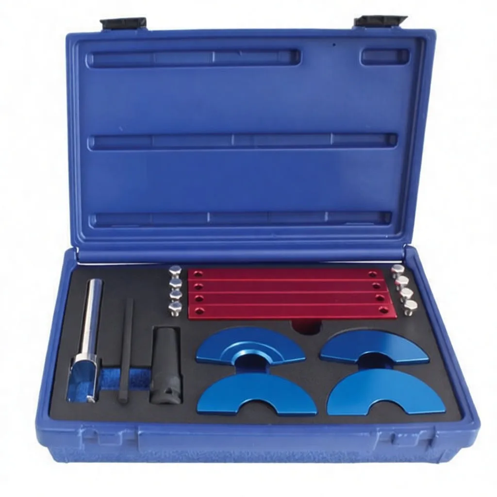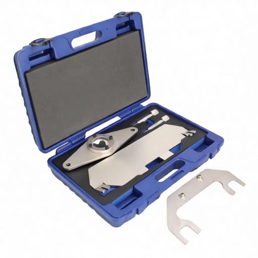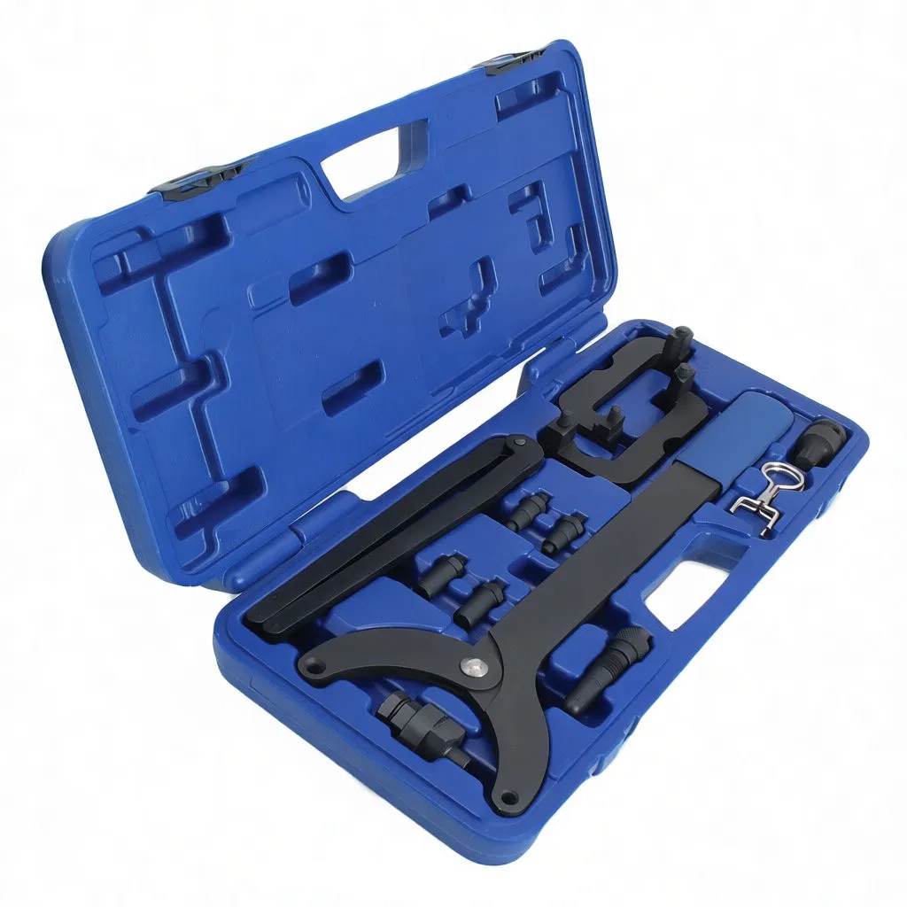 Professional timing alignment kit for VW, Audi, and Porsche FSi engines. Precision clamps and locking pins ensure accurate cam/crankshaft positioning.